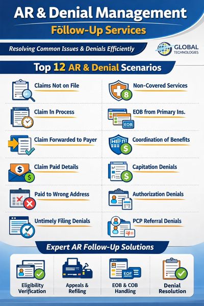 We have compiled a list of issues and actions for common AR and Denial Management scenarios. This will help you evaluate your current process and identify gaps.
